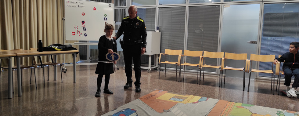 El curs d’educació viària va ser dirigit per un agent i els va explicar els diferents senyals que els vianants han de tenir en compte, com circular pel carrer i quines coses s’han de tenir presents per anar pel carrer amb tot el grup classe.
